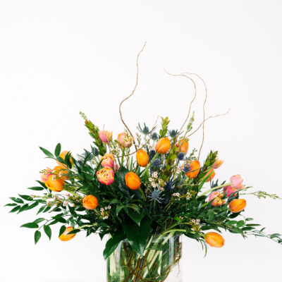 Spread springtime joy with this vase full of fresh tulips! Bursting with vibrant colors, these seasonal flowers are perfect for brightening up any space. Don't miss out on this bouquet of joy!
